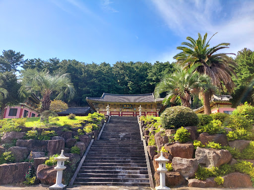 : 사라봉공원 입구에 있는 사찰. 새로 지은 지 얼마되지 않은 듯 새 것의 느낌이 많이 남.대웅전을 등지고 바라보는 전망이 아주 좋음.
