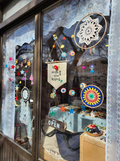 코멘트: 제주 벚꽃시즌에 전농로 벚꽃놀이 갔다가 들른 제주 감성소품샵이었네요~♡ 작년에도 벚꽃시즌에 들러서 너무 좋은 기억이 있어 들렀는데 .. 역시나 사장님이 반갑게 맞아주셔서 기분이가 좋았네요. 사장님이 직접 그리셨다는 만다라도 보고, 뜨개장인 사장님의 솜씨 좋은 소품들이 한가득이었어요. 이것저것 고르니 사장님이 서비스로 우정반지도 선물해 주셔서 너무 감사히 잘 끼고 있어요. 내년 벚꽃시즌에 또 만나요~~♡