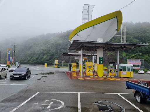 코멘트: #학섬휴게소내에 있는 주유소, 기름값은 평균정도로 보임, 배모양을 지붕으로 디자인한 모습은 신선하였다
