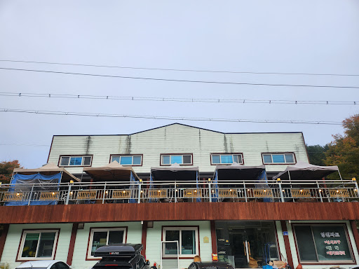 : 다른곳과 달리 개인 야외에서 해먹은 맛과홍천강을 바라보는 뷰가 멋져요~~단지~~옆방소음이 들려요