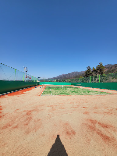 : 인조잔디 테니스 코트가 2면 있어요. 야간 라이트는 없음. 원주시 홈페이지에서 전날까지 예약 후 사용가능. 그늘이 없어 대낮에는 땡볕. 코트마다 앉아서 쉴수있는 쉼터가 있어요. 어댑터가 많아서 핸드폰 충전도 가능. 새로생긴 화장실도 깔끔.