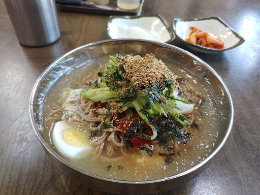 코멘트: 여름엔 막국수 종류 겨울엔 메밀만둣국,칼국수. 해물육수라 깔끔하고 시원하다.겉절이와 무는 양껏 덜어먹으면 됨.