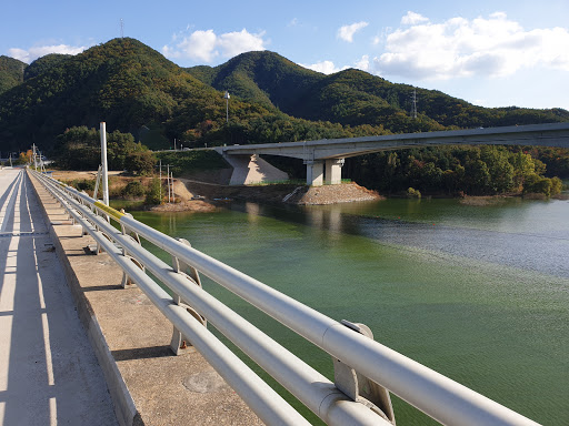 : 맑은 대청호위에 다리두개가 나란이 플라잉낚시꾼들이 멎지게 낚시하던곳입니다.