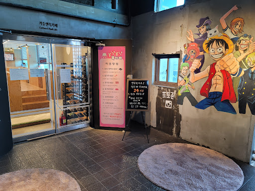 코멘트: 24시간 열려있고 다양한 놀거리가 많음. 만화책이 많고 굴방에서 티비도 있는데 넷플릭스와 디즈니플러스도 볼 수 있어서 매우 좋았음. 게다가 보드게임도 있고 오락기도 있고. 가격도 타 만화카페에 비해 착함. 하루종일 놀기 좋아서 이것저것 하다보면 시간이 금새 지나감. 분위기도 좋은데 그래서 공부하기도 딱임. 결정적으로 너무 귀여운 고양이가 있어서 보고 있으면 정말 힐링됨. 고양이 알러지약도 준비되어 있어서 알러지 있는 사람도 편히 이용 가능함. 라면 시켜먹고 맛나서 볶음밥과 라볶이도 시켜 먹음. 다음엔 다른 메뉴에 도전예정. 혼자도 커플끼리도 오기 좋은 장소임