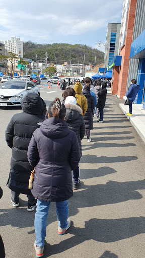 코멘트: 마스크 줄이 마트 한바퀴를 감아도 넓은 주차장