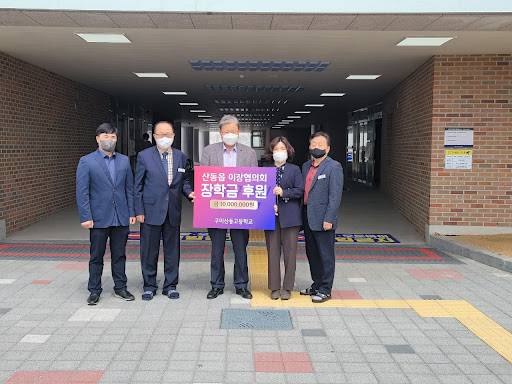 코멘트: 구미 지역 최고의 명문고 산동고등학교에 산동읍면장학금 1,000만원을 올해도 전달 해 드립니다. 2020년 개교때 부터 매년 (주최 산동읍 이장협의회) 전달식