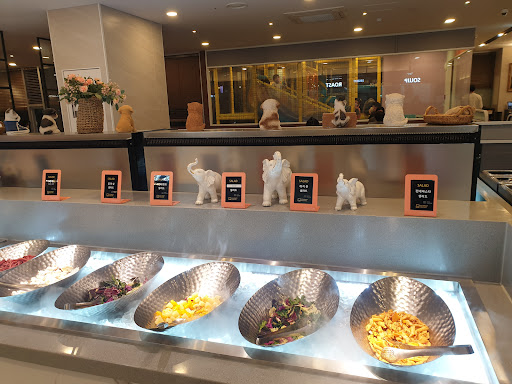 코멘트: 처음 인상은 이런 혜자뷔페가있나 싶을 정도로 메뉴도 많고 넓고 좋아요.그런데 먹어보니 맛이 좀 아쉬워요 고기가 좀 퍽퍽하다던지, 파스타에 면말고 재료는 거의 없다던지 하는식입니다. 디저트에도 과일은 아무래도 단가가 비싸다보니 특별한 과일이 많진 않습니다.까다롭지않은 사람들은 저렴한비용에 많이 먹을수있으니 좋습니다만 저는 까탈스러서 맛에대해 좀 아쉬웠습니다. 가격이 뷔페치고 저렴하다보니 이해는 됩니다. 그래서 별은 네개줍니다. 제생각에는 품목을 줄이더라도 퀄리티를 올리는방향이 좋지않을까합니다. 남편과갔는데 둘다 재방문은 안할거같다는 의견입니다. 그릇을 치워주는 서비스는 괜찮았어요. 직원이 많았음.