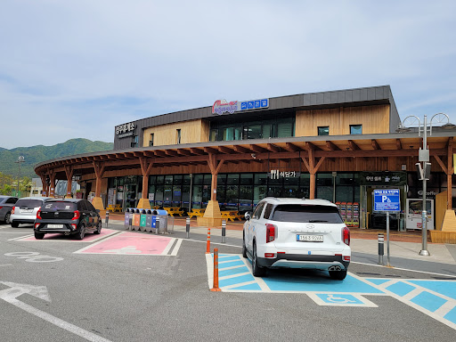 코멘트: 중부내륙고속도로 상의 휴게소.임시휴게소로 운영하다가 2018년 2월에 정규휴게소로 전환되었습니다.이 휴게소가 없었을 때에는 위쪽의 선산휴게소와 아래쪽의 남성주휴게소 사이의 거리가 50km가 넘었습니다.경부고속도로의 김천휴게소와 남성주휴게소 사이의 거리도 약 50km 수준이었기 때문에 휴게소에 가기 위해서는 상대적으로 긴 시간을 운전해야 했습니다.성주휴게소가 생기면서 선산휴게소나 김천휴게소까지 거리가 약 30km 정도로 줄어 들게 되어 휴게소 선택의 폭이 넓어지게 되어 운전하기 편리해 졌습니다.전체적으로 휴게소가 넉넉한 부지를 가지고 있어서 주차공간이 많아요.특히 주차선이 넓어서 주차하기에 편리했어요.야외 지붕을 받치는 기둥 아래에 앉을 수 있는 공간을 마련해 놓은 점이 눈에 띄었습니다.