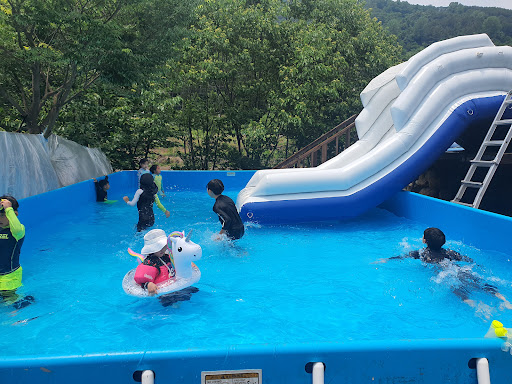 : 아이들과 캠핑하기 너무좋은곳입니다놀이방 방방이 영화관 수영장 게임기까지 좋아하네요경치도좋고 사이트도좋네요