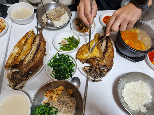 코멘트: 소문난맛집 대화식당에 일요일 방문을 했는데 쉬는날이어사 문을 닫었다. 그런데 옆집 경북보리밥에 여러손님들이 줄을지어 기다리고 있어서 30분가량 기다려서 식사를 하게 되었다. 가격 7000원 1인 1생선(고등어, 가지미, 대구볼살 중에 선택가능), 된장찌게, 밑반찬, 계란후라이 함께 제공되고, 밥은 보리밥/쌀밥섞어, 보리밥만, 쌀밥만 3가지중에 선택 먹을수 있다. 다음날 궁금해서 대화식당에서 아침을 먹었다. 두곳다 맛집인데.. 맛, 가격, 선택면에서 비교한다면 나의선택은 경북보리밥이다. 강력 추천!!!
