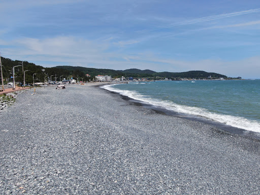 코멘트: 몽돌해변이다. 동해안에선 보기 힘들다. 까만 몽돌이 보기 좋다. 파도가 오고갈 때마다 달그락거리는 소리가 듣기 좋다. 해변이 1.5km다. 워낙 넓어서 붐빈다는 느낌이 들지 않는다. 바닷가 주변에 식당이나 카페가 많다. 주차장 자리도 많다. 기분전환하기 좋은 곳이다.