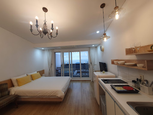 코멘트: 깔끔하고 깨끗합니다. 군더더기 없는 숙소의 정갈함이 느껴집니다. 바다 뷰는 화물선도 보이고 수평선 근처의 불빛을 밝힌 어선도 보입니다. 야외 풀에서 놀 수도 있고 바로 옆에서 고기를 구울 수도 있어서 작은 공간이지만 소규모 인원에게는 최적의 장소일 수도 있겠네요.