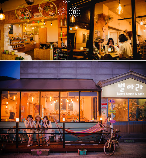 코멘트: 뭘 잘못 눌렀는지 계속 지워짐에도 꿋꿋하게 후기 남깁니다3박 4일 남해 휴가왔고 3박을 별아라 게하에서 숙박하고 있어요.별 5개도 모자랄 정도로 개인적 만족도가 높은 곳입니다1층은 카페.2층은 게하를 운영하고 있으며 2인실.3인실.4인실등 다양하게 있는 것 같아요. 화장실.샤워장은 공용으로 사용하지만 불편함이 전혀없을 정도로 공간이 넓어요. 샴푸겸린스. 비누. 샤워볼이 있어요.1층에 공용거실이 있어서 자유롭게 이용하면 되고 1층 주방에 조식타임때 사장님께서 식빵.우유.계란.잼등을 놔두시면 알아서 조리하여 드시면 됩니다객실은 전체 다 바다뷰여서 누워서 바다가 보여요카페도 바다뷰여서 커피한잔 마시며 가만 가만 보기만 해도 좋아요.커피는 동티모르커피래요 드립.더치 커피등 다양하게 있고 과일차 종류도 있어서 입맛대로 주문해서 드세요.카페가 정말 아기자기해서 여성분들이 좋아하시는지 손님많아요.다음에 또 방문예정입니다휴.. 이젠 삭제 안되겠죠?ㅜ