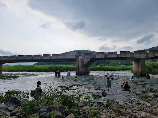 코멘트: 깊진않지만 충분한 유량의 강물과 다리아래의 그늘이 시원함을 즐길 수 있고 굵은 자갈바닥이 차가 진입할 수 있도록 되어 있어 가족들이 물가에서 쉬기 좋음