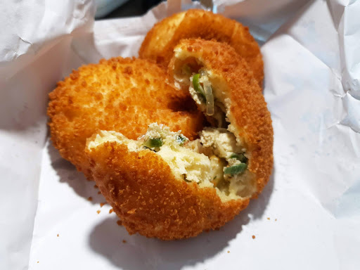 코멘트: 경화 장날에 가게앞에서 고로케 도넛 만두등을 판다. 장날이 아닐때는 어떤지 잘 모르겠다.도넛은 평범한 편이고 고로케가 특색이 있다.평소에 기름기에 느끼해서 고로케를 안 먹는 편이지만 이곳 고로케는 덜 느끼한 편이 있어서 괜찮은 편이다. 가격은 한개에 천원, 시장이라서 비싸다 할진 모르겠다만 빵집에서 고로케를 사봤다면 그리 비싸다 할 정도는 아닌 가격.아마도 만두 소를 그대로 활용해서 만든 고로케인듯한데 그 소의 양이 푸짐하거나 많은 느낌은 아니다. 오히려 소가 별로 없는 느낌이다. 그렇지만 막상 먹어보면 그 소의 재료맛이 강하게 들어오는데 간이 쎈편이라 느끼함을 좀 덜어주는 느낌이다.간단하게 먹을만 하고 꽤 오래된 집이라 경화시장의 로컬푸드라고 할만하다. 괜찮다.