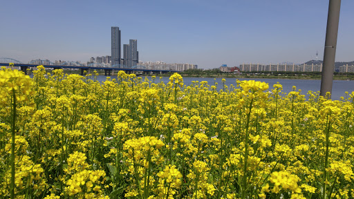 : 서래섬의 유채꽃밭은 정말 아름답습니다. 노란 들판에서 멋진 사진을 찍을 수 있을 것 같아요.
