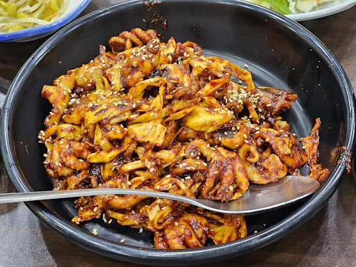 코멘트: 2024.04불맛 제대로 나는 진한 양념의 쭈꾸미와특별한 맛은 아니지만 호불호가 없이 맛있게 비빌 수 있는 곤드레나물밥을 먹을 수 있다큰 가게는 아니지만 충분히 칭찬 받을 수 있는 음식을 가지고 있는 곳이다.자극적이라면 자극적이지만 매콤하면서 달달한 쭈꾸미볶음은 곤드레밥이랑 정말 잘 어울리는 메뉴다....가게 주변 작은 화단에는 예쁜 애기똥풀과 박태기나무꽃이 한창이다. (4월하순기준)
