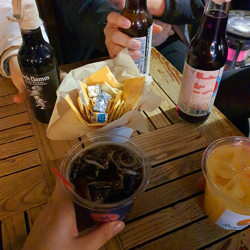 코멘트: 번화가 골목에 위치, 생각보다 조용한 펍한끗 차이로 유동인구가 엄청나게 차이나는데펍에서 춤추고 노는거보다 사람들끼리 이야기 하고 싶으면이 곳을 이용하는게 더 좋은거 같다* 어둡기도 하고 오픈 된 공간이다보니 모기 조심* 테이블 비례해서 의자가 상당히 많음