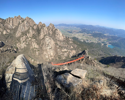 코멘트: 월출산은 등산하기 좋은 곳이에요!올라가는 길에는 볼거리가 많지 않지만(흥미롭지 않은 사원 하나) 전망은 훌륭합니다.이번 오르막길에는 올라가야 할 큰 바위가 많이 포함되어 있다는 점에 유의하세요. 어린이에게는 적합하지 않을 수 있습니다. 반드시 실제 등산화를 착용하세요.