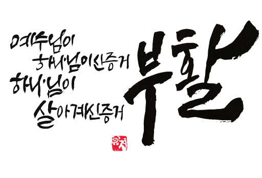 : 성령의 권능으로 부활을 증거하는 교회입니다.