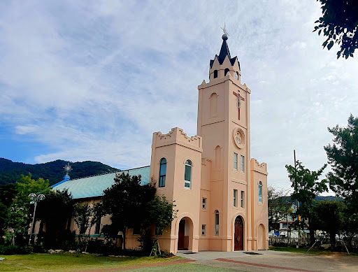 : 마당이넓직하여 주차하기도 좋고 성당의 바닥이 옛날 학교 교실 바닥과 같이 판자로되어 있어서 초등학교 다니던때가 생각나는 성당에서 미사참례하니 좋기도 좋을시고....