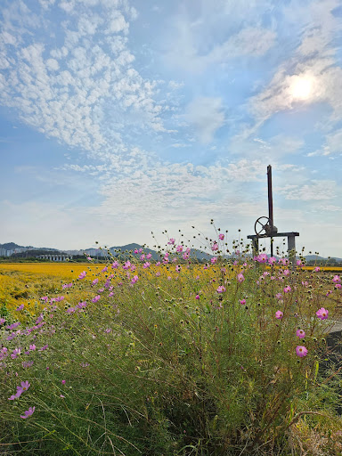 코멘트: 경기둘레길 53코스가 있습니다. 시흥연꽃테마파크(관곡지), 갯골생태공원으로 이어지는 둘레길이며 10월 초순부터 중순까지 이 길을 걷는다면 벼가 누렇게 익은 황금들판 길과 가을 길섶 코스모스가 하늘하늘거리는 가을 서정을 느끼실 수 있습니다. 그리고 신현역에서 도보 이동이 가능하기에 서해선 전철이 시원하게 달리는 모습도 보입니다.10월에 걷기 좋아하시는 분들에게 추천 드립니다.