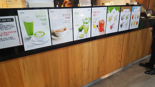 : 이전에는 할리스 커피었으나 지금은 포르테로 이름이 바뀜. 커피컵 사이즈는 작은것 하나로 일률적임. 아메리카노는 맛있는편, 라떼류도 평타 이상인듯. 레모네이드류는 그냥 레몬가루에 탄산이 섞인듯한 맛이나 이런 스타일을 좋아하는 사람은 몰라도 레몬조각이 들어간 신선한 레모네이드와는 거리가 먼듯. 가격은 비싼편.