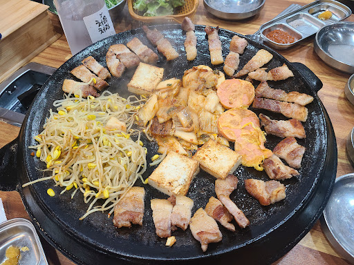 코멘트: 삼겹을 솥뚜껑에 구워서 가운데 모이는 기름에 김치 튀겨서 나옵니다. 기름 튀는 특성상 구워서 나오느라 1인분 추가는 힘들다합니다. 2인분 추가라서 2인먹고 2인 시키면 배불러서 먹을수없으니 첫주문에 3인으로 시작했습니다.원래 팬션가도 밤새 먹어도 600그램 사가면 한두줄 남기는 편인데 부족할까봐 첫주문 3인 시켰다가 배불러서 남겼어요김치전골은 고기 굽고나서 그 솥뚜껑에 해주는데 비주얼에 비해 맛은 그냥 그래요차라리 고기먹는중에 김치찌개 시킬수있게 하는게 고기 기름 느끼한거 잡아줄거같다는 생각이 드네요구운 김치는 맛있었어요 고기도 맛있었어요고기먹으면서 먹을수있는 국이 따로 있는게 좋늘거같아요