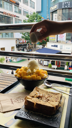코멘트: 웨스턴돔 건너편 벧엘교회 근처 건물2층에 위치한 설빙밖에서 봤을때는 이렇게 큰지몰랐는데 은근히자리가 많다. 테라스도 커서 날씨 좋을때는 나가서 먹어도 좋을 것 같다짜장짬뽕 처럼 망고와 인절미 팥빙수 반반이 있어서 그걸로 여러개 샀다연유를 뿌려먹으니말이 필요없이 너무 맛나다망고빙수와 인절미빙수는 궁합이 짱이다이것저것 시키고 테이블 이동해서 풑이고 귀찮게 했는데도 친절하게 대응하는 직원도 좋았다. 평일 저녁이여서 그런지 많이 시켰는데 바로 나와서 그것도 만족함유자차, 생강차, 산딸기오미차 도 괜찮다빙수 먹다가 따뜻한 차를 마시니 속이 데워져서 편해짐종이컵도 준비되어 있어서 나눠마시기도 좋다의자도 많고 앉을자리 많고 깨끗하고 넓어서 좋다